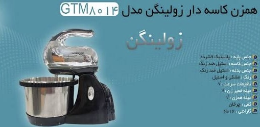 وزن۲.۴۰۰ کیلوگرمظرفیت کاسه۳ لیترتعداد تنظیمات سرعت۵ سرعتهجنس کاسهاستیل ضد زنگجنس بدنهاستیل و پلاستیکاقلام همراهدارای ۲ سری همزن و ۲ سری خمیر زن