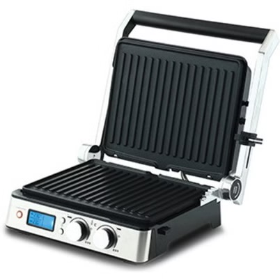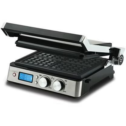 باز شدن درب تا زاویه ۱۸۰ درجه و امکان استفاده به صورت گریل تخت، کنترل جداگانه درجه حرارت صفحات بالایی و پایینی