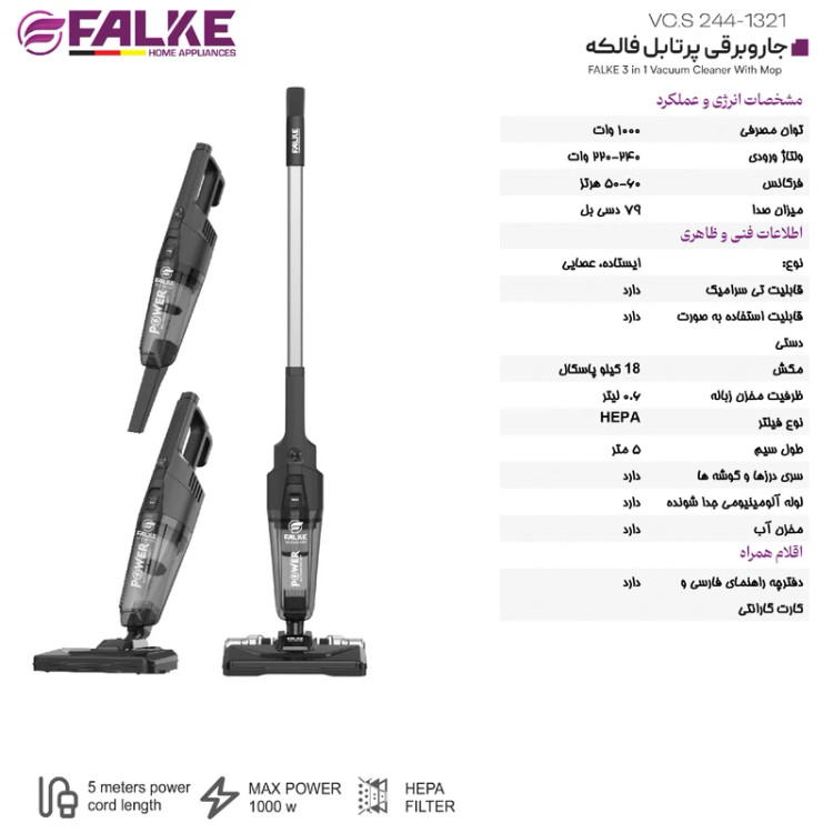 طول کابل برق: ۵ متر